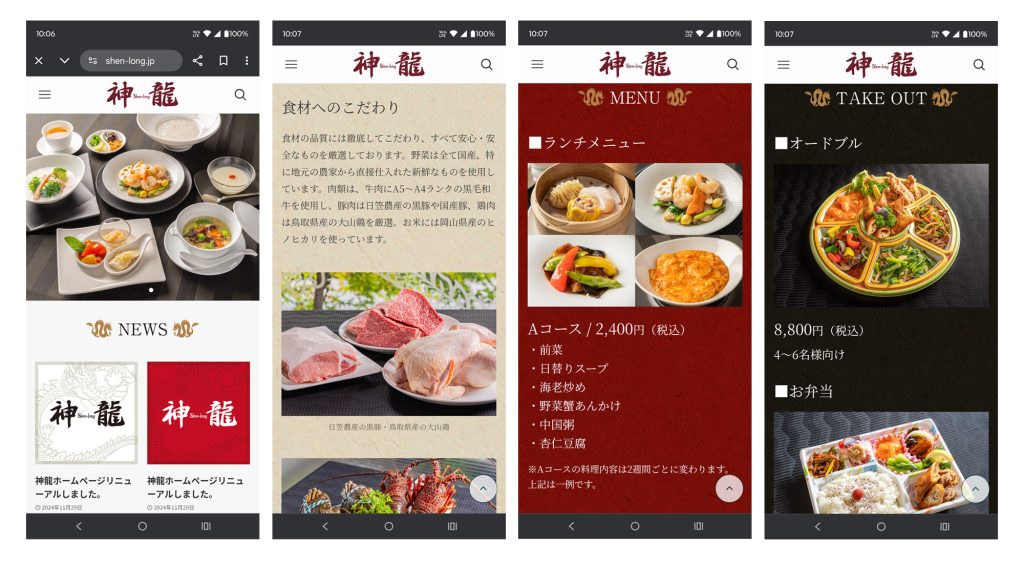 いつも神龍をご愛顧いただき、誠にありがとうございます。このたび、皆さまにより快適にご利用いただけるよう、当店のホームページをリニューアルいたしました!新しいサイトでは、メニュー情報の見やすさをはじめ、店舗からのお知らせや季節限定メニューのご案内もスムーズにご覧いただけるようになっております。スマートフォンからも見やすくなりましたので、ぜひブックマークしてください。